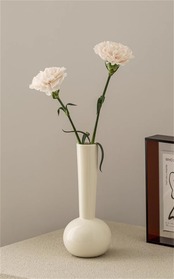 この繊細な小口径ロングネックの陶器花瓶は、シンプルで上品なデザインが特徴です。