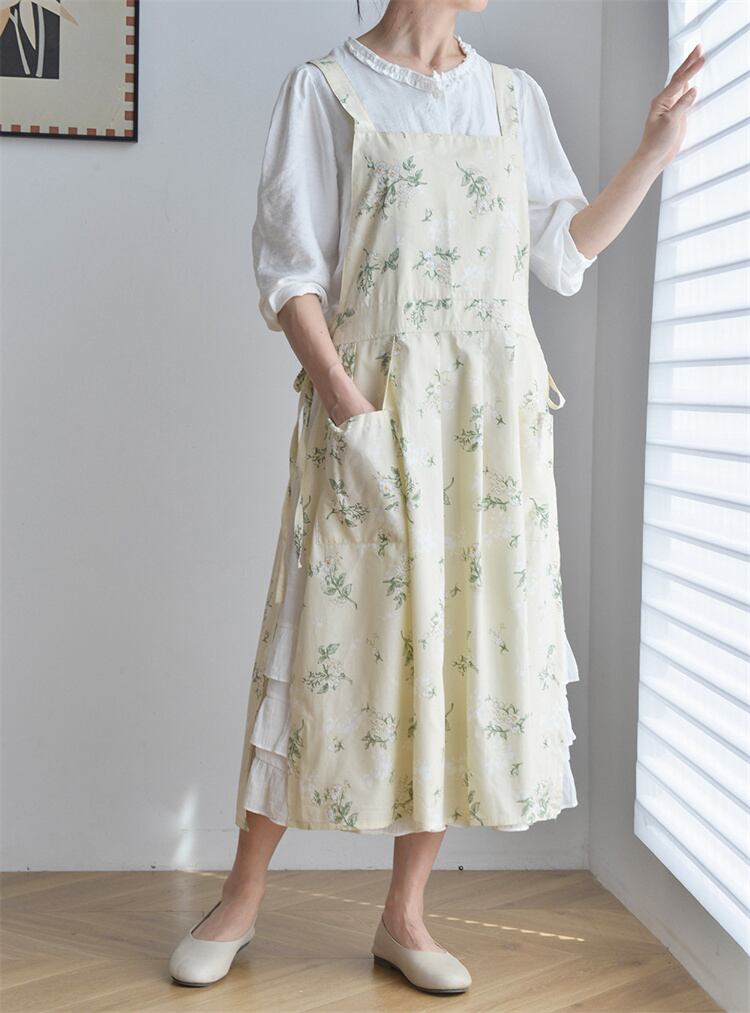 綿100% キッチンエプロン 防汚防水 家事用 韓国風プリント 花屋用 調節可能
