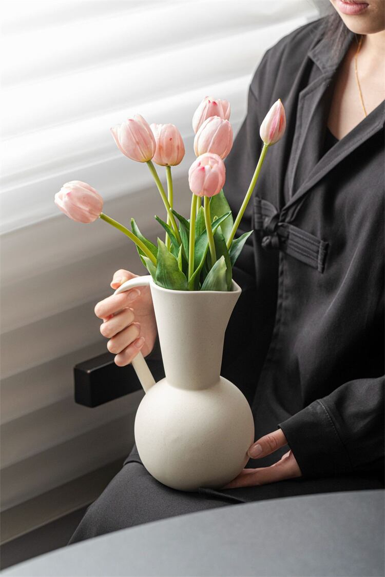 おしゃれなミルクポットデザインの陶器花瓶はいかがですか? 手作り感ある優雅な曲線と滑らかな釉薬仕上げが、インテリアに温もりを添えます。