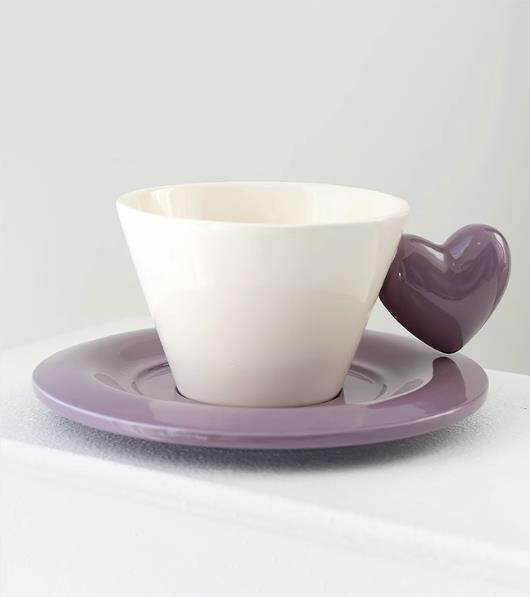 カップル用 ハートデザイン コーヒーカップ&ソーサーセット 陶器製マグカップ