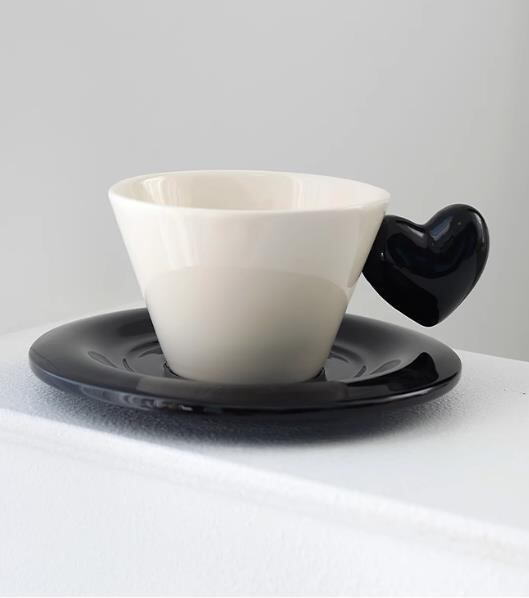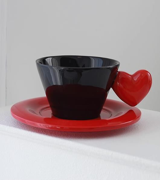 話題の注目アイテム カップル用 ハートデザイン コーヒーカップ&ソーサーセット 陶器製マグカップ N2JY2025041805 :dodo