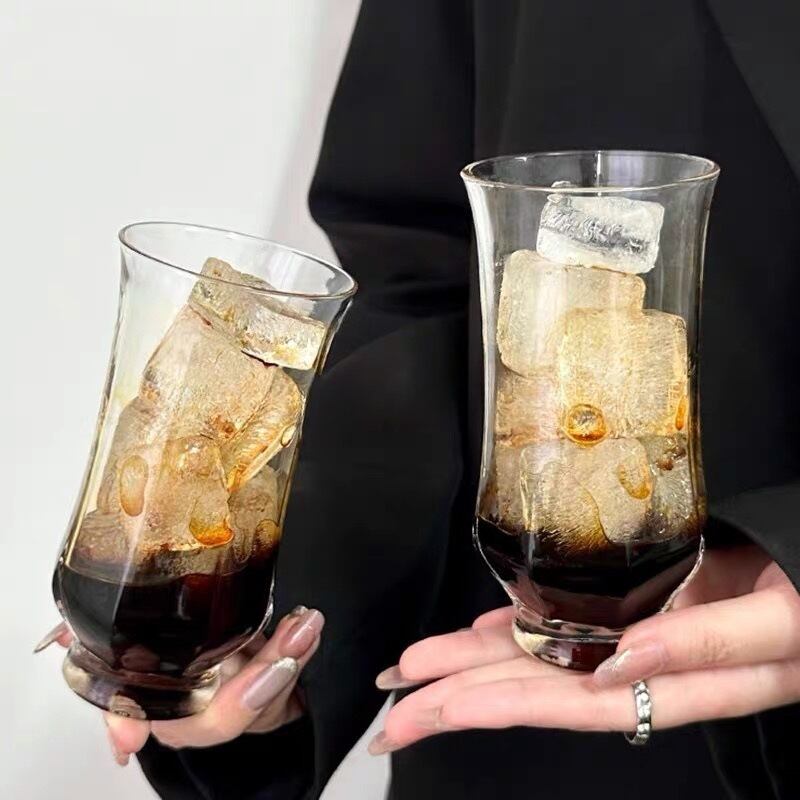 レトロシンプル八角ガラスカップ アイスアメリカーノ&ラテ用 欧風ジュースカップ