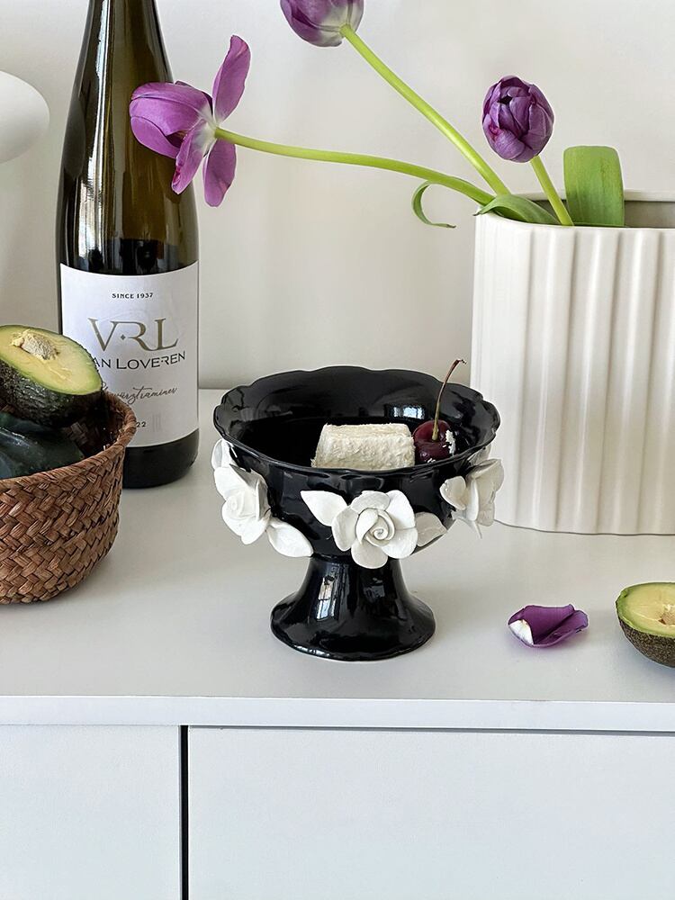 こんにちは!手作り感たっぷりの「立体バラ釉薬マグカップ&デザートカップ」をご紹介します, 一つひとつ職人が丹精込めて成形した立体バラと、釉薬下絵付の繊細な模様が上品な輝きを放つ逸品です, 厚手陶器製で保温性抜群、コーヒーはもちろんスイーツやスムージーにも最適, 食品安全基準をクリアした安心素材で、電子レンジ対応(※蓋除く)。