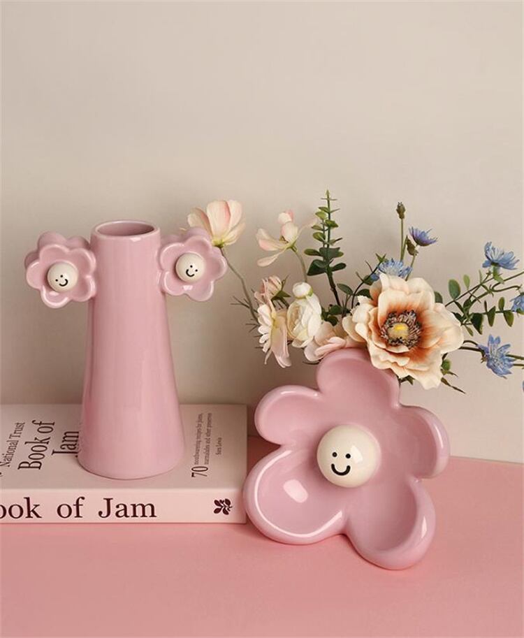 お買い得!! 【季節ギフト対応】笑顔の陶器花瓶 おしゃれなリビング飾り 玄関卓上 インテリア雑貨 N2JY2025051627 :dodo