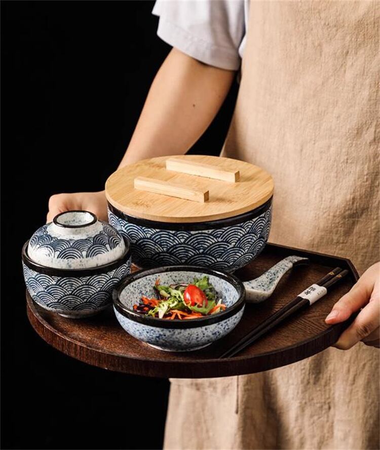 最終プライス 朝食一人前 陶器食器 トレイ付き サラダボウル プレートセット 麺碗 | コンパクト食洗機対応 N2JY2025051624 :dodo