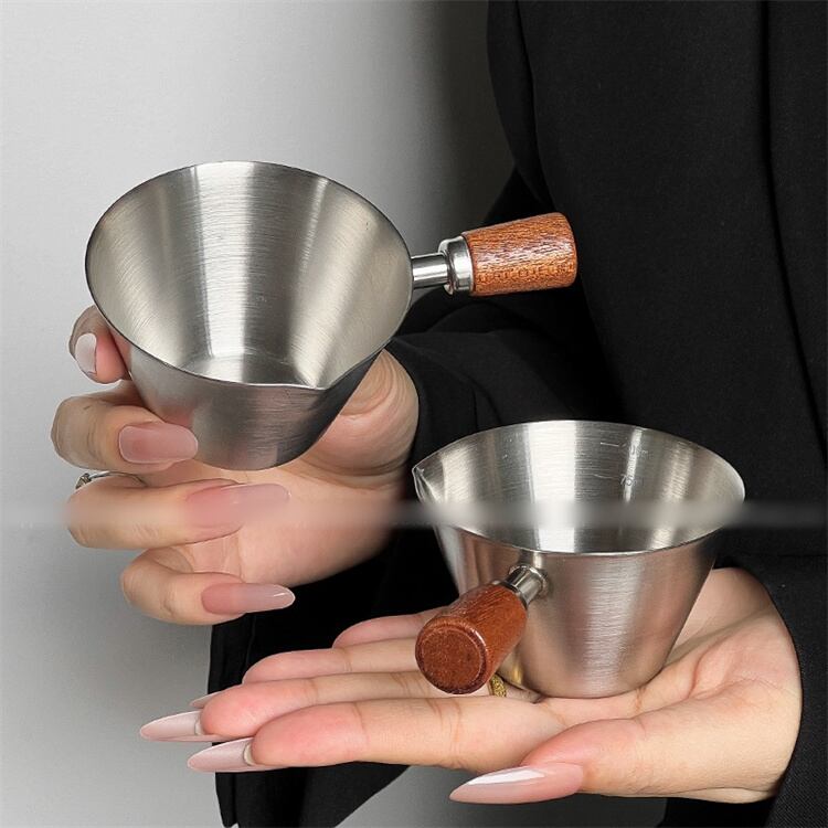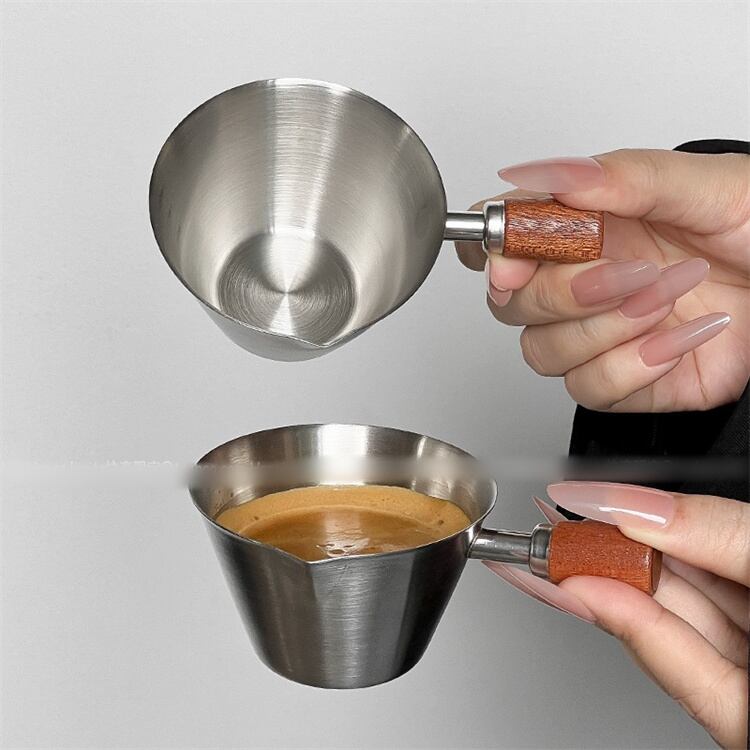 エスプレッソ抽出専用 ステンレス目盛カップ 胡桃木ハンドル コーヒーリキッド受け容器