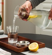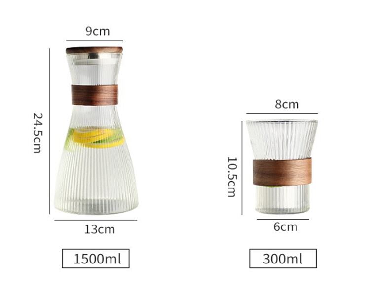 高硼珪酸ガラス製 耐熱防爆デザインの冷水ポットセット 透明コップ2個付き 家庭用