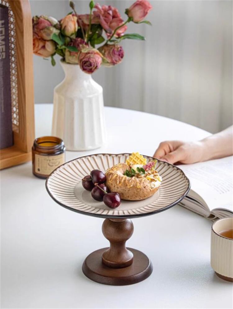 木製高脚トレー セラミック仕上げ お菓子盛り皿 玄関・リビング飾り ヴィンテージ風インテリア雑貨