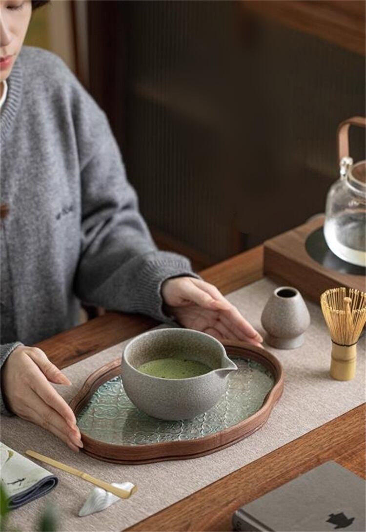 手作りの味わい深い点茶碗と茶盞は、東洋の茶文化をやさしく包み込み、方寸サイズの抹茶碗が侘び寂びの世界を演出します。