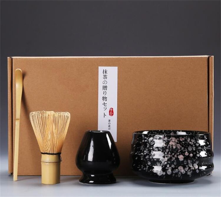 セラミック抹茶碗4点セット 茶筅・百本立て付き 宋代デザイン点茶ツール