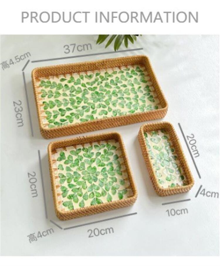 藤編みシェルデザインの家庭用収納3点セット 長方形フルーツトレイ&ディスプレイプレート N2JY2025062330 :dodo