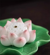手作り陶器の蓮の花をモチーフにした線香立てです; 繊細な蓮の葉模様と自然な質感が、お部屋に上品な和の雰囲気をプラス;香りが漂うたびに心が安らぎ、灰受けトレイ付きで後片付けもラクラク! 書斎やリビングのインテリアとしても; 仏壇用・マインドフルネスアイテムとしても人気ですよ〜