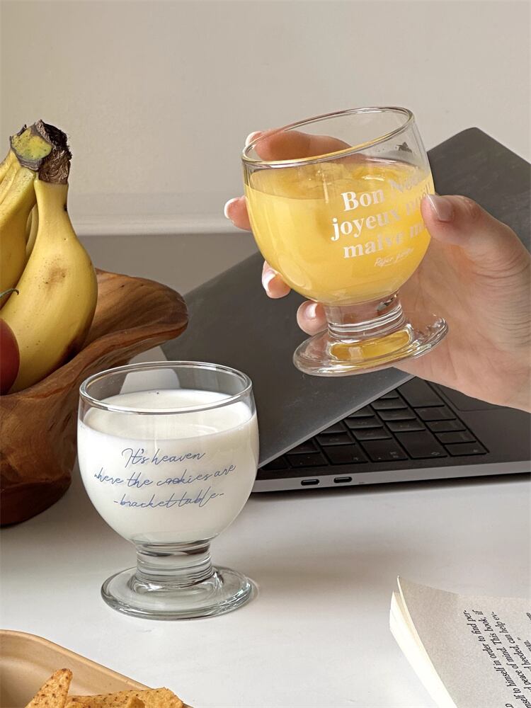 朝のオレンジジュースやヨーグルトスムージーにぴったり! 繊細な英字・仏字プリントがおしゃれな雰囲気をプラス; 手に馴染む軽やかさで、毎日のルーティンが特別に変わる一杯です。