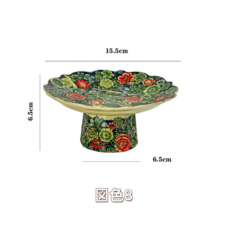 家庭用 高脚菓子皿 手描き模様の陶器 フルーツ盛り付けに N2JY2025072512-01 :dodo