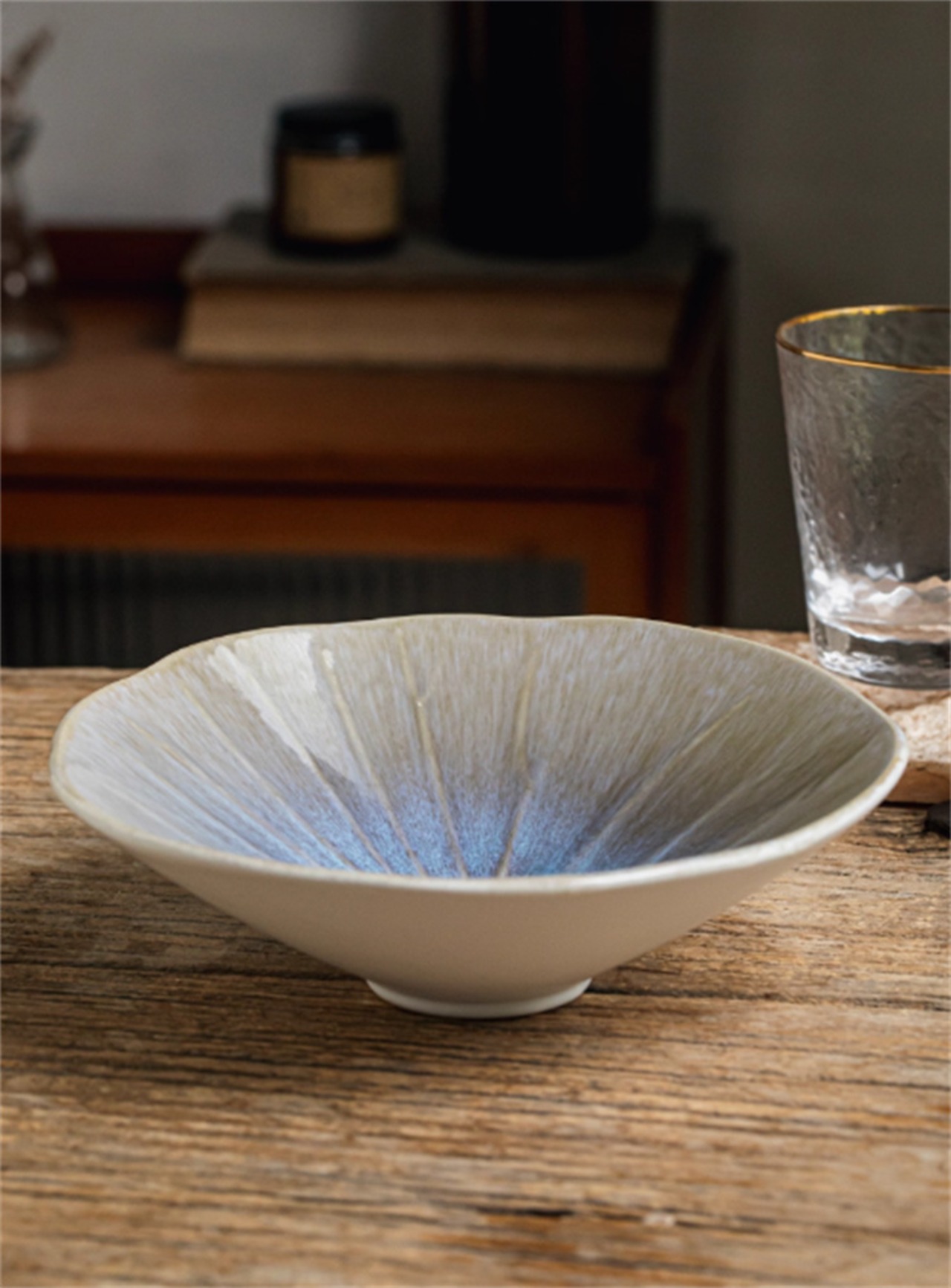 7.5インチの斗笠型が超カワイイ!650mlで、汁気の多い料理やサラダ、麺類、お菓子まで全部OK♪ 高温焼成の釉色は「毎回新しい作品」!色彩の組み合わせが驚くほど美しく、口元の少しゆがんだ部分が「おしゃれなムード」を引き立たせる; 唯一無二のお皿で、食卓に笑顔を届けましょう