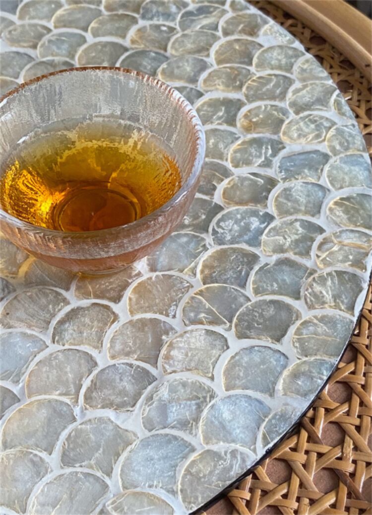 ティータイムのケーキ皿や朝食のフルーツボウルに最適♪ 貝殻の自然なカーブが光を浴びて煌めき、異国リゾートの雰囲気を演出。