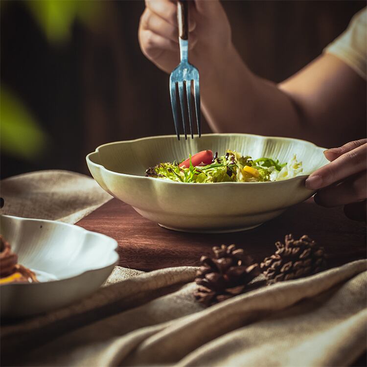 8インチ深型皿 花びら螺纹デザイン 家庭用陶器食器