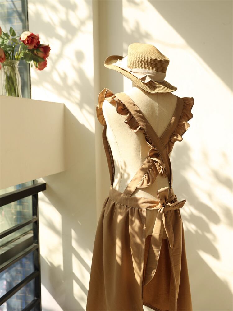 背中紐調整 リネンエプロン 胸元装飾 調理用 汚れガード N2JY2025091112 :dodo