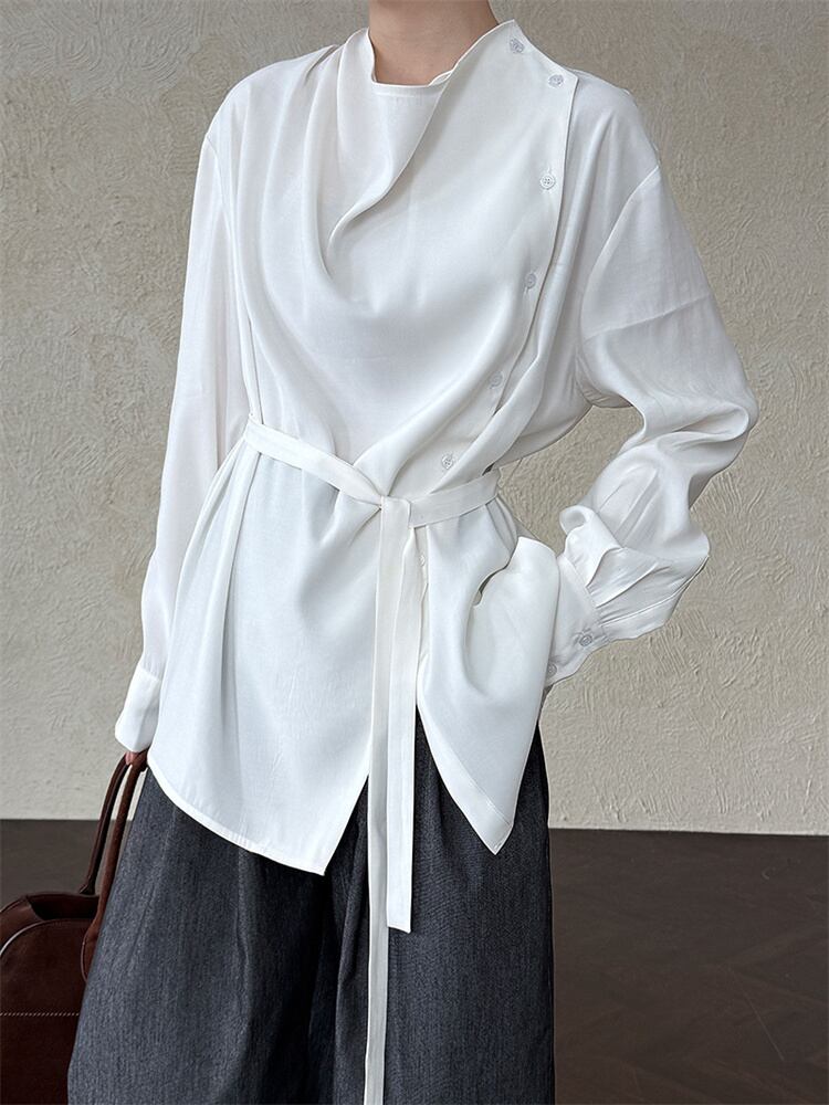 ウエストリボン調節可能 秋向けシャツトップス N2JY2025091709 :dodo