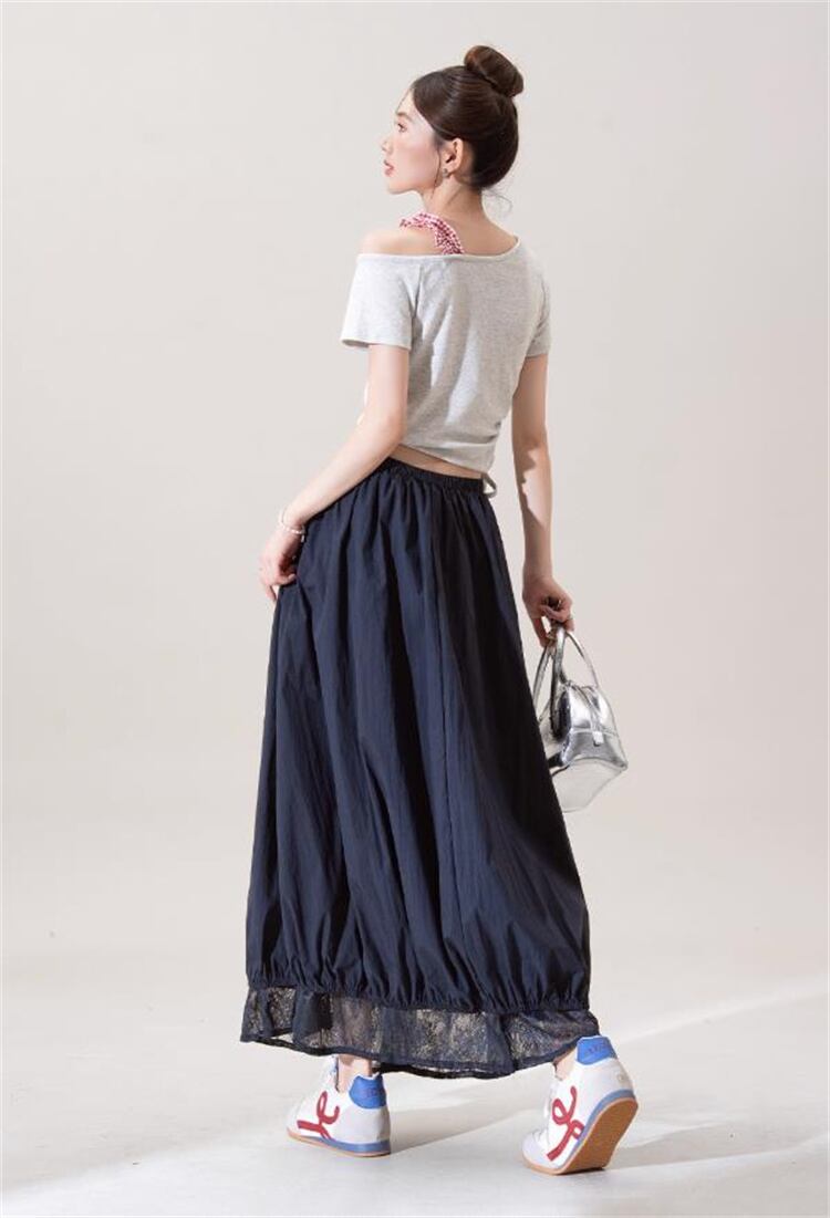 2025夏季 ハイウエスト リラックスウエスト Aライン ロング フラワーバックルスカート N2JY2025082701 :dodo
