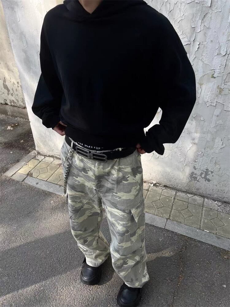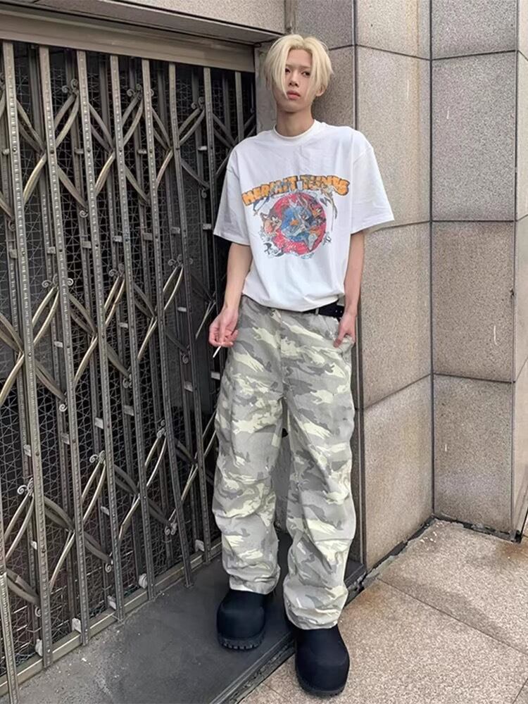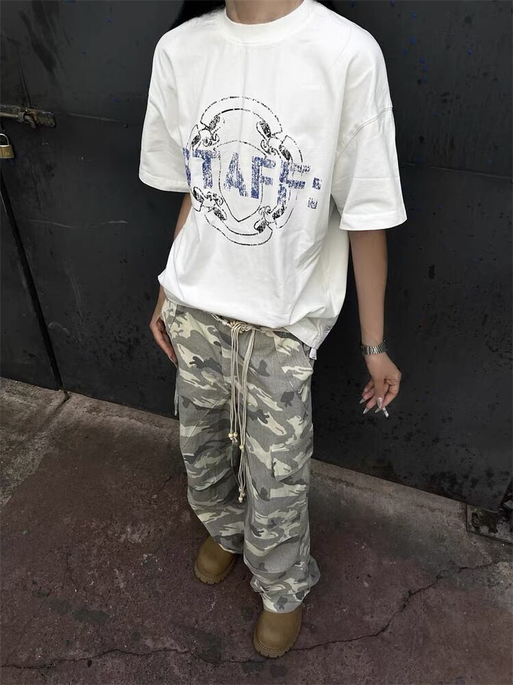 ヴィンテージ調 ストレートワイド 迷彩ワークパンツ 男女共通 N2JY2025081803 :dodo
