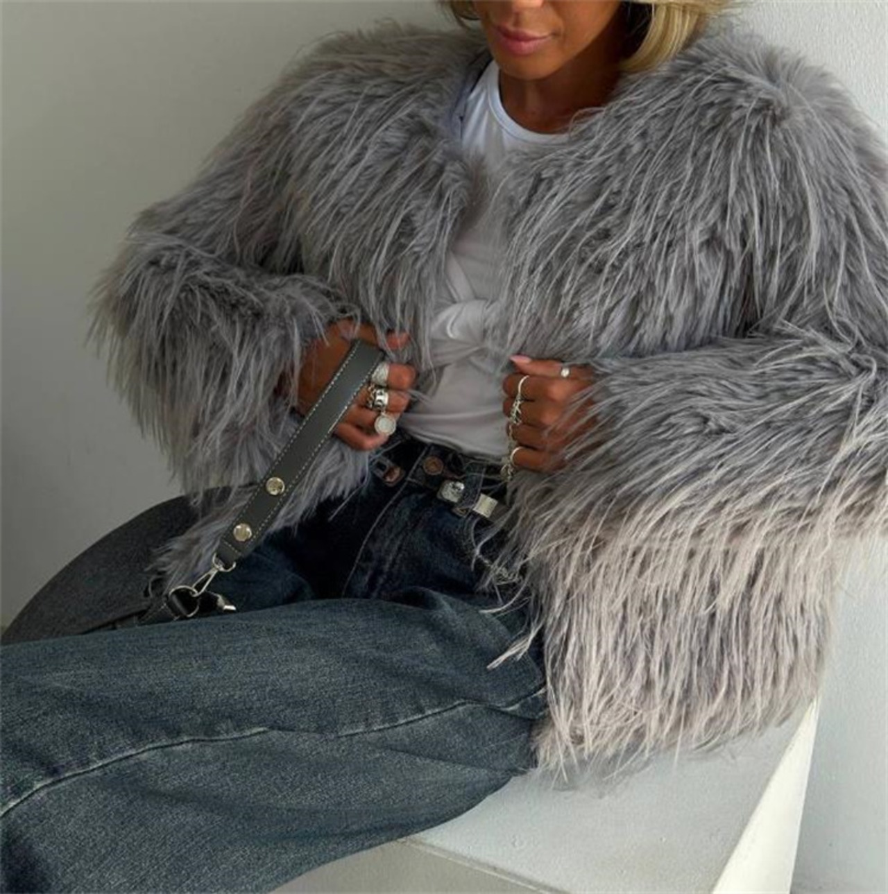 フェイクファー あったかショートジャケット ゆったりデザイン