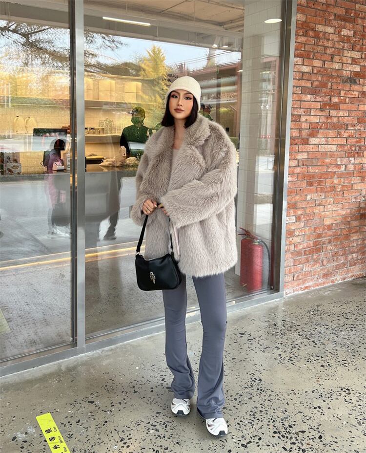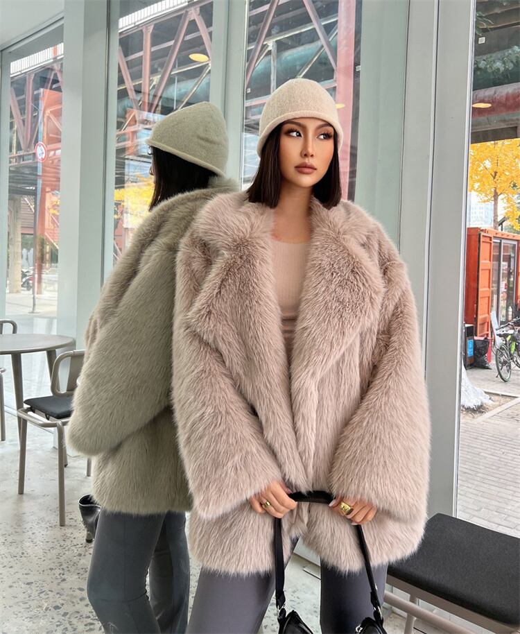 2025 AW オールドファッション風 中長 キツネ調 毛糸素材 ルームウェア風 コート
