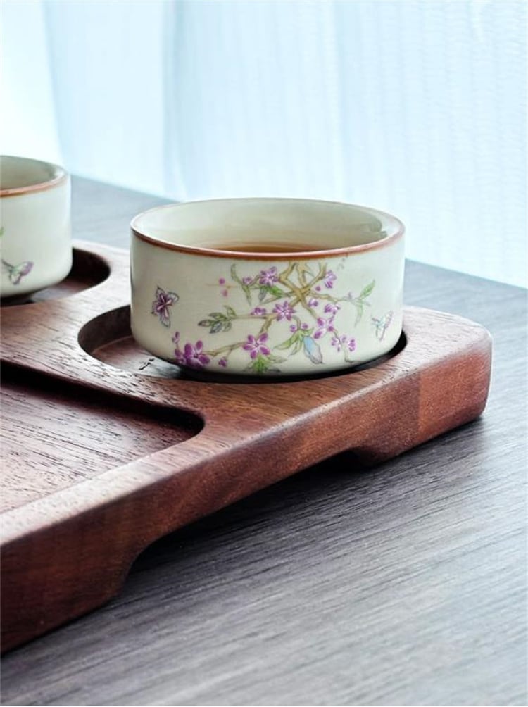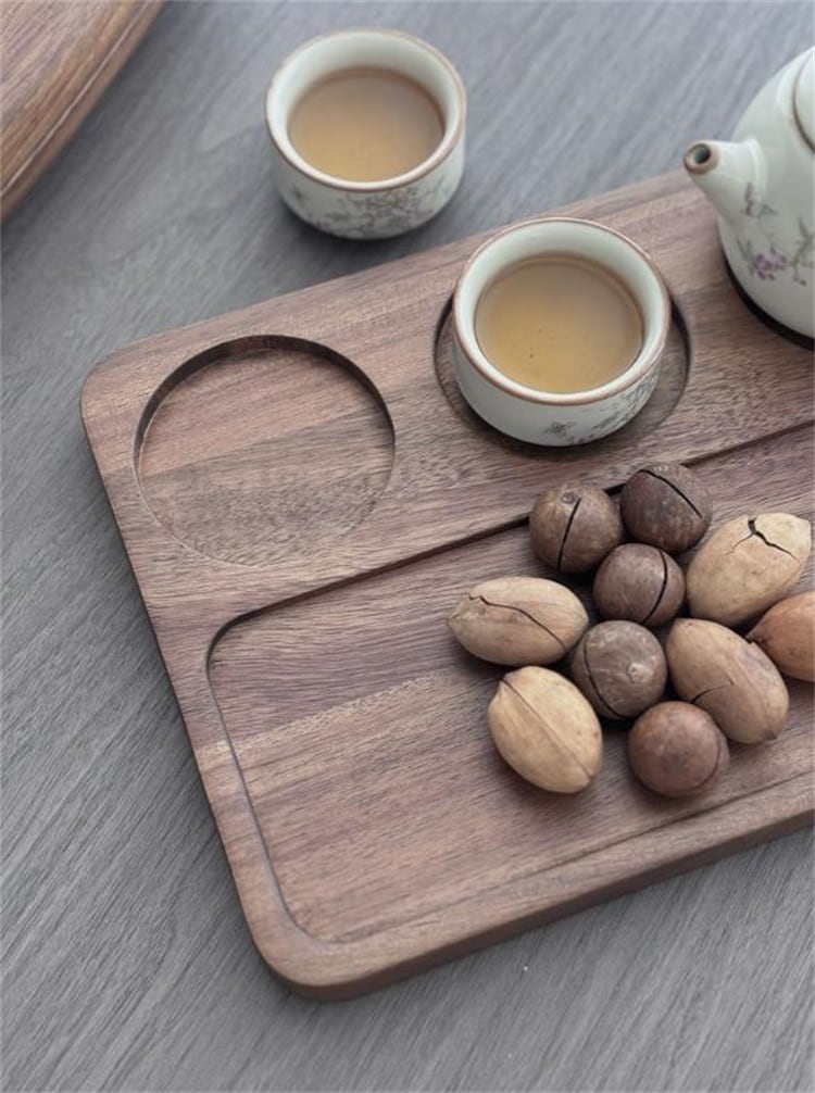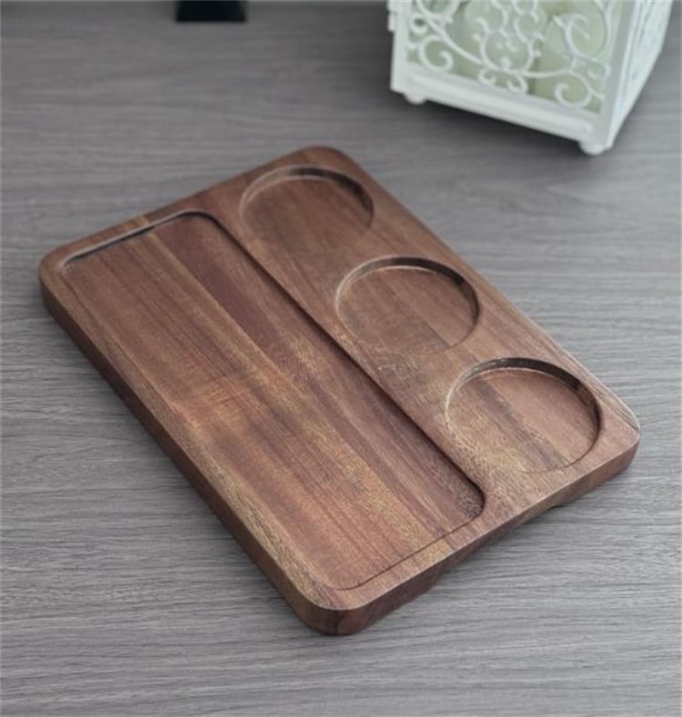ナチュラルウッドトレイ 3ポケット コーヒーカップ&菓子置き N2JY2025100926 :dodo