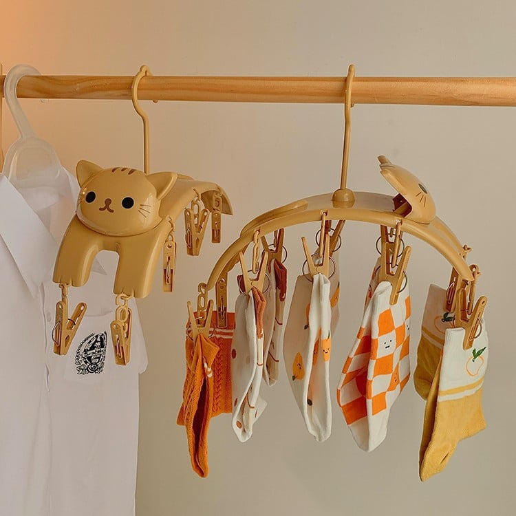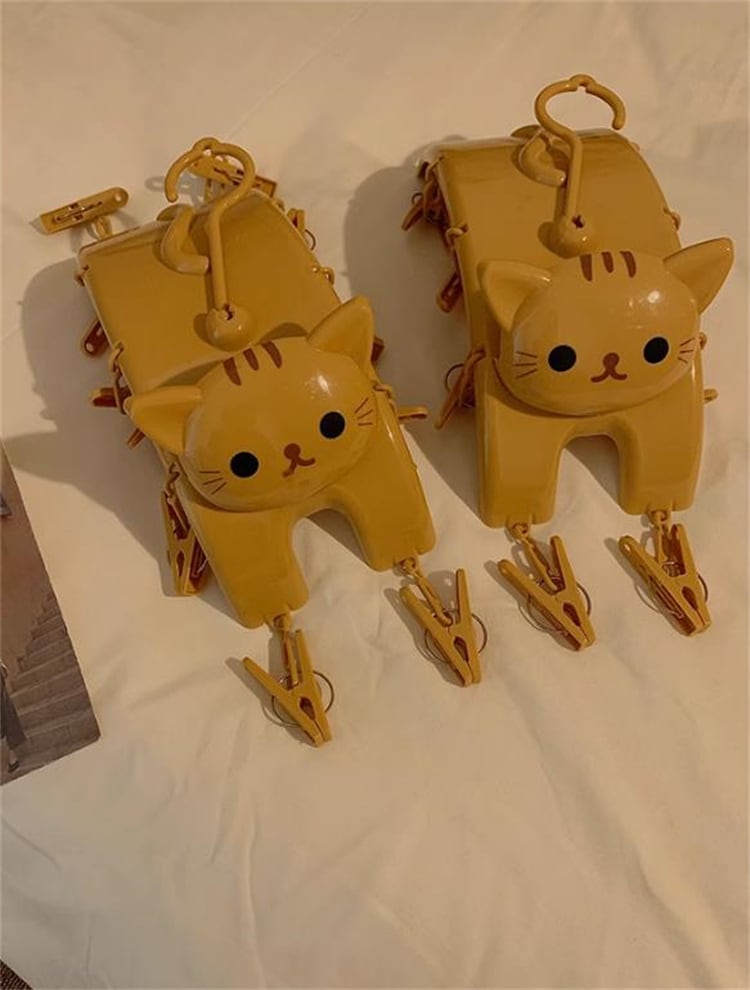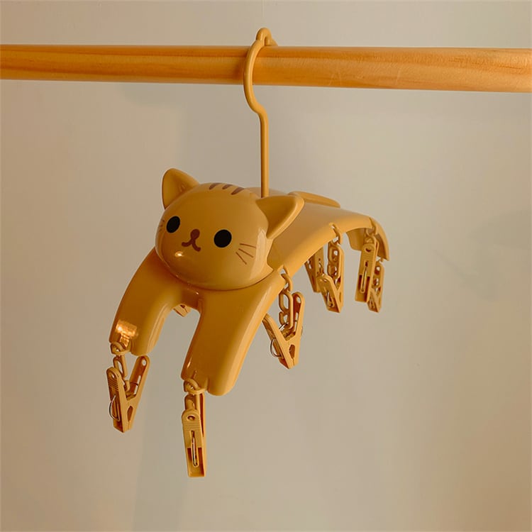 猫の形折りたたみ干し器 10個クリップ 靴下・下着・小物 ベランダ/室内用 N2JY2025100923 :dodo