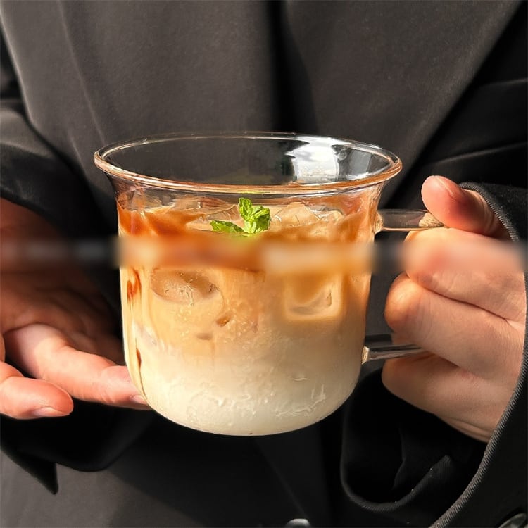 シンプルデザイン ガラスコップ 取っ手付き 耐熱 家庭用 ラテ・コーヒー向け N2JY2025100920 :dodo