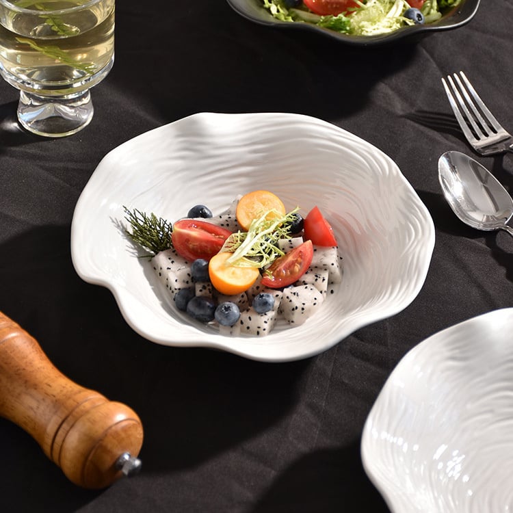 蓮の花デザイン 不規則形状 釉下彩 サラダ碗・汁碗 家庭用 N2JY2025092212 :dodo