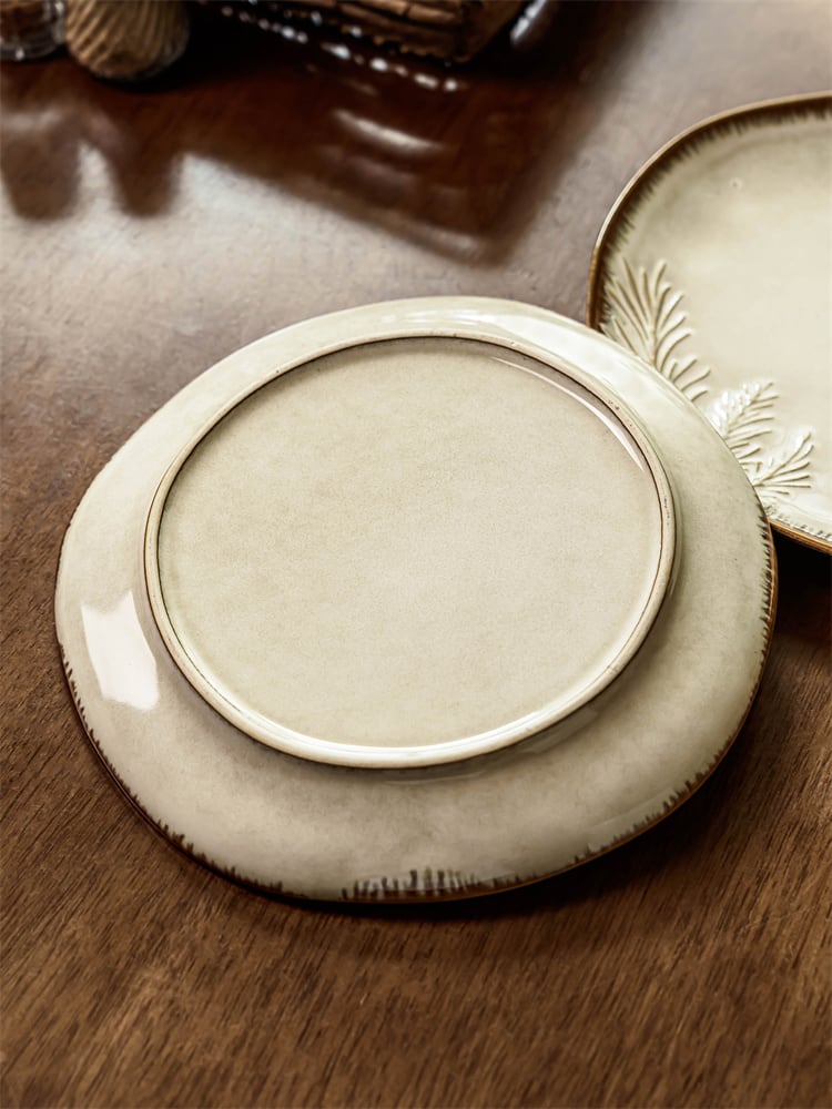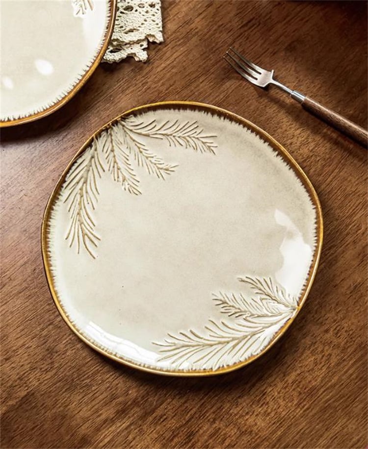 レトロ調異形プレート 葉模様彫刻 ステーキ用 家庭用食器 デザイン皿 N2JY2025092210 :dodo