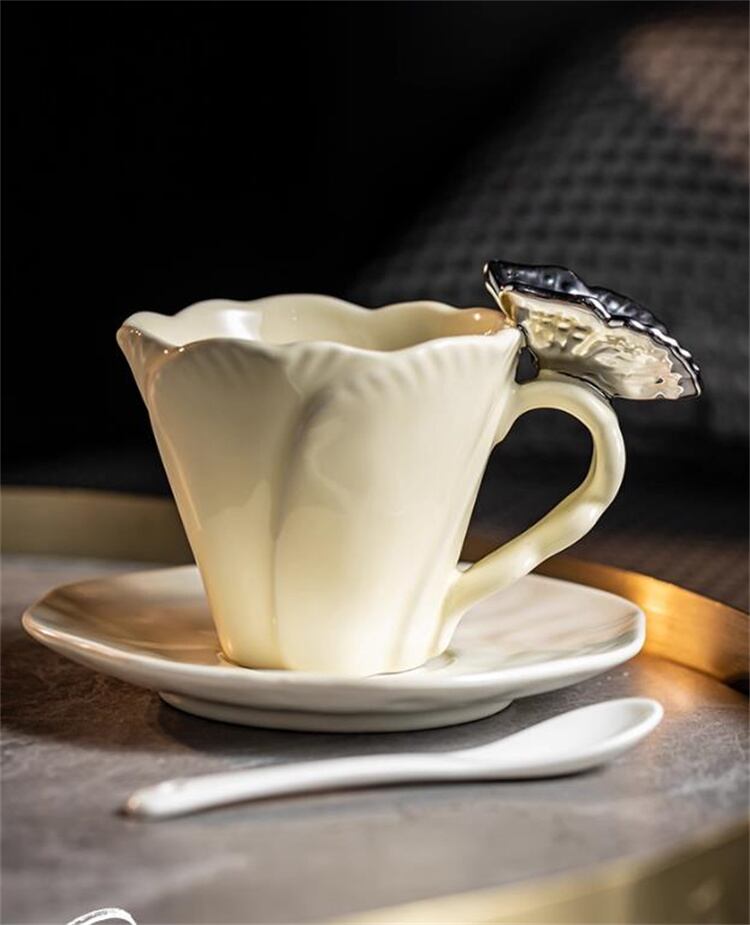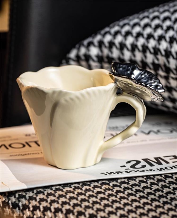 立体蝶々デザイン セラミックコーヒーカップ エレガントな日常小物