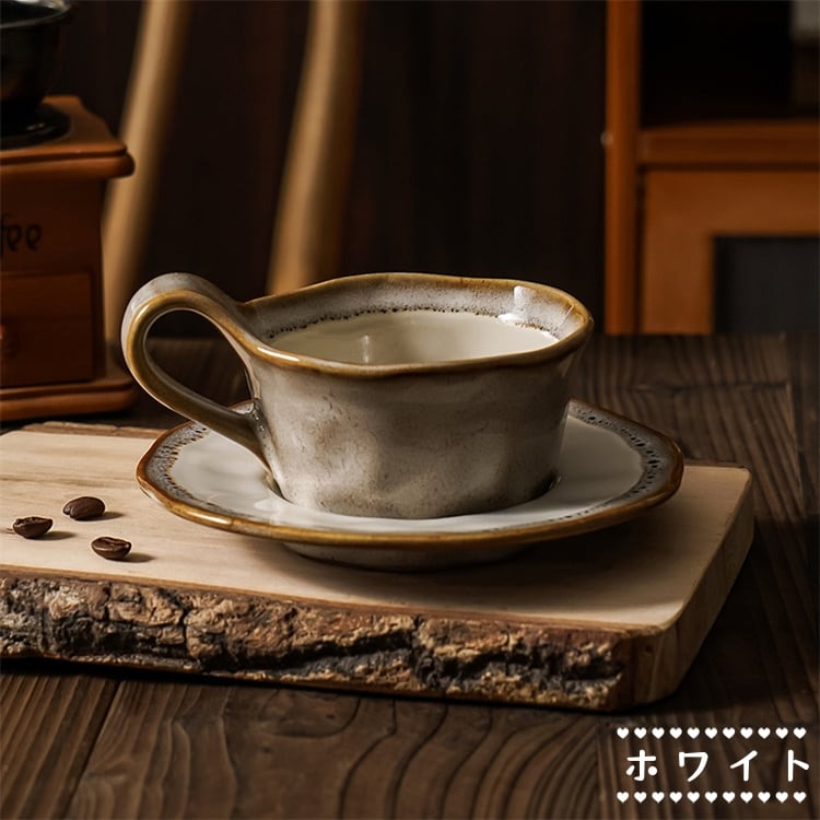 陶器カップ&ソーサー 2点セット シンプルデザイン ラテアート用 コーヒーカップ