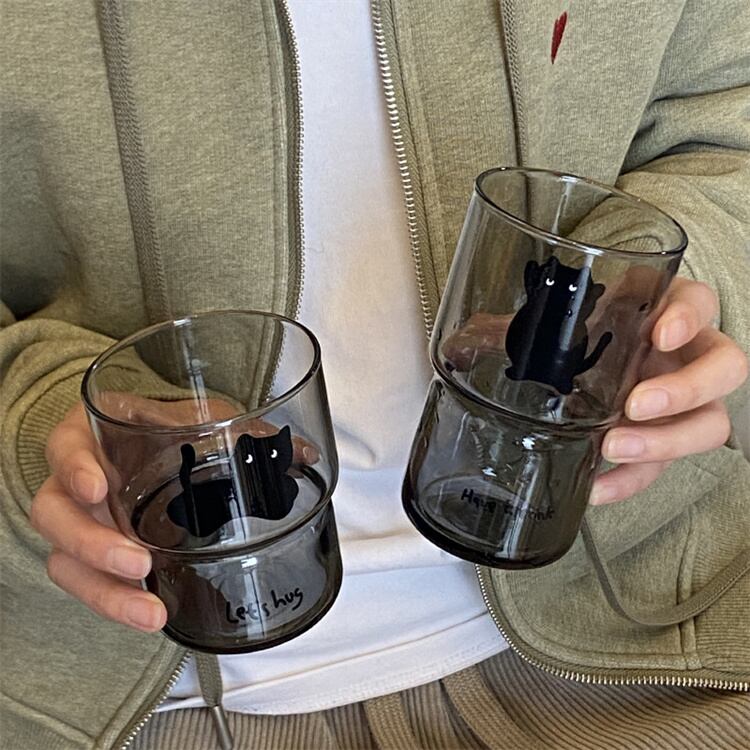 黒猫デザイン 強化ガラス製 耐熱水筒 ギフト用 重ね可能 冷飲み用コップ