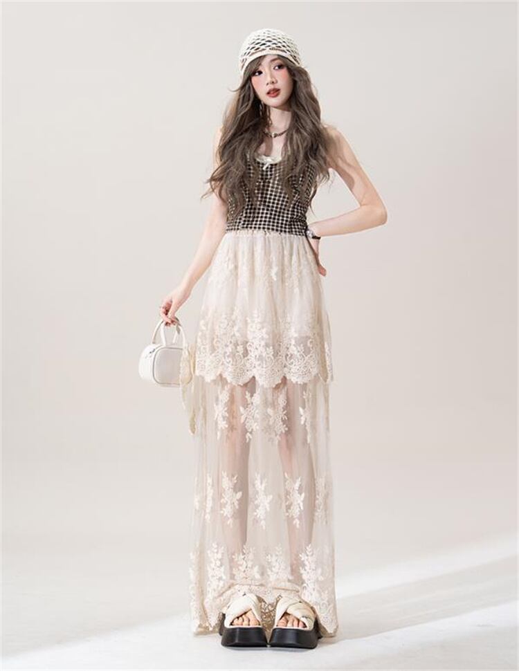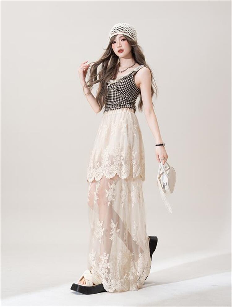 レトロレース 網タイプハイウエストスカート 2025夏 薄地 女性用