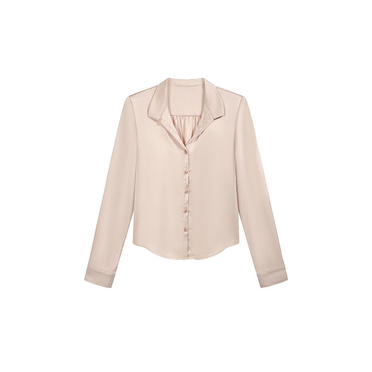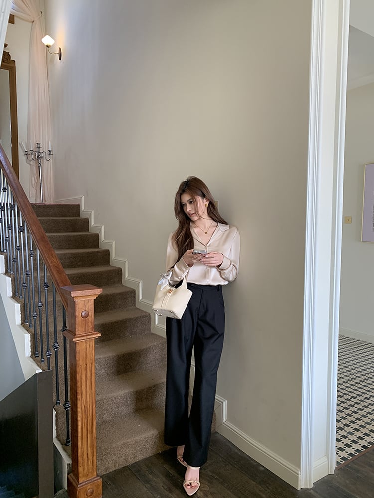 2025年秋冬 シルク風Vネックシャツ ロングスリーブ ゆったりシルエット N2JY2025081508 :dodo