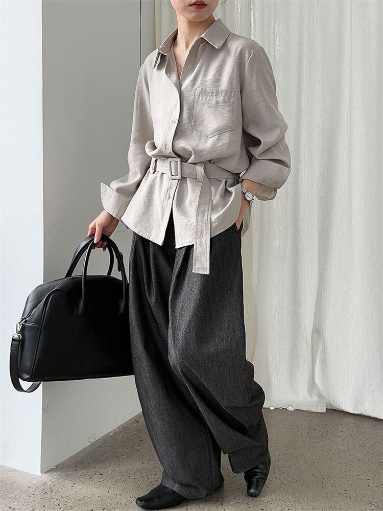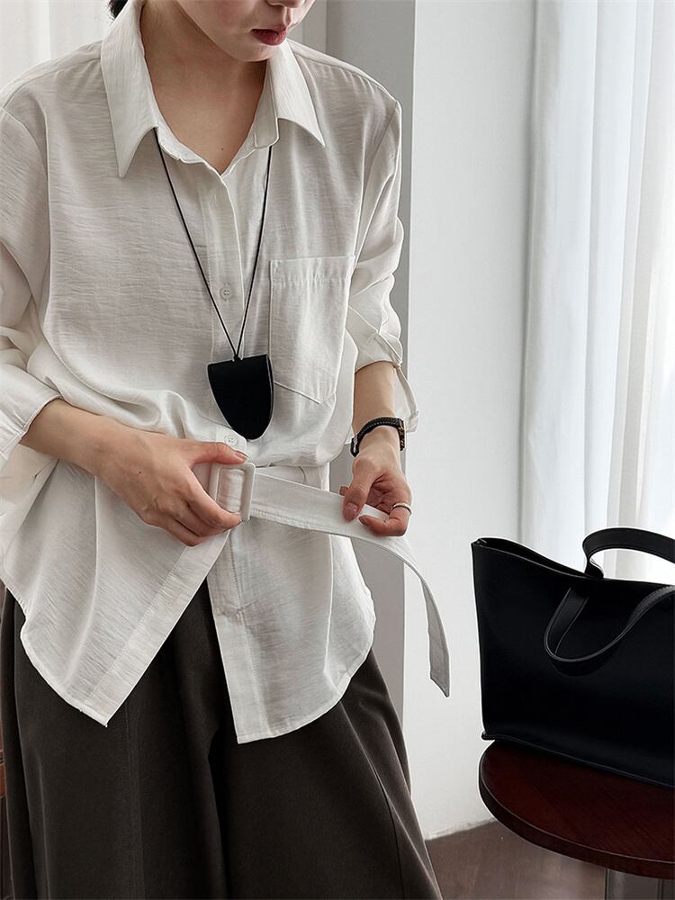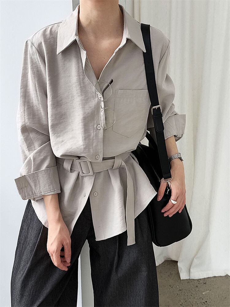秋の通勤着 ベルト付き ゆったりシャツ 2025新作スタイル
