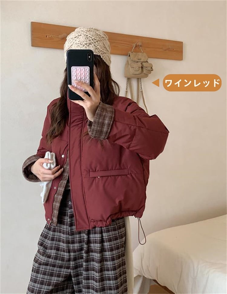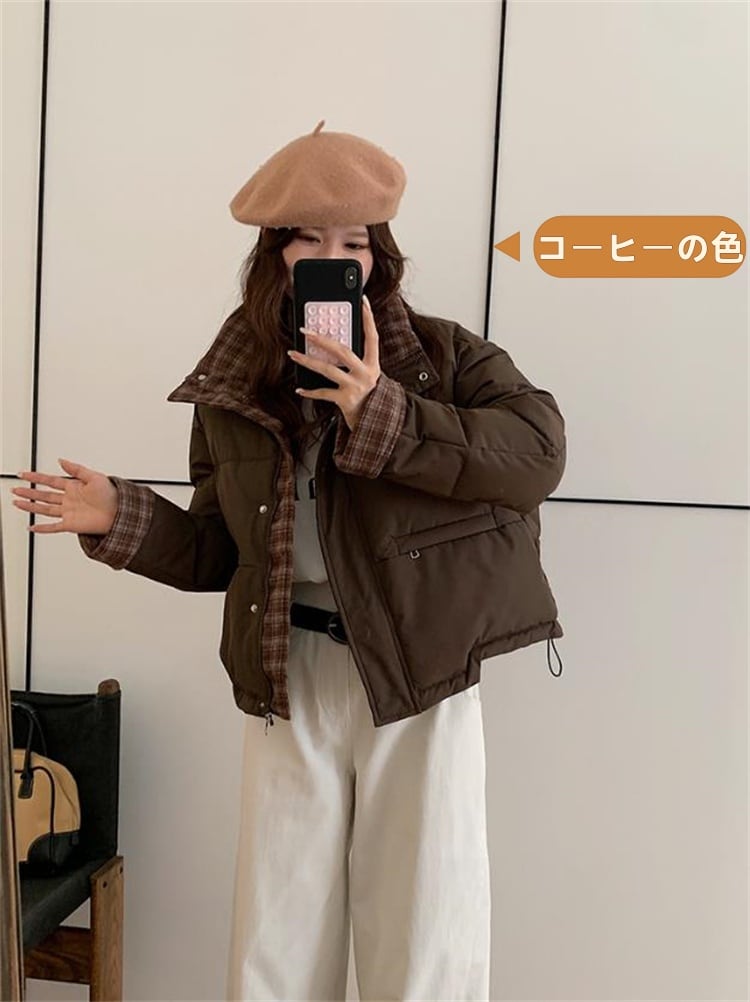 スタンドカラー 2025年冬 新作 ショート丈コットンジャケット 学生向けルーズシルエット