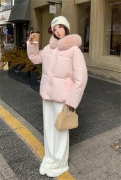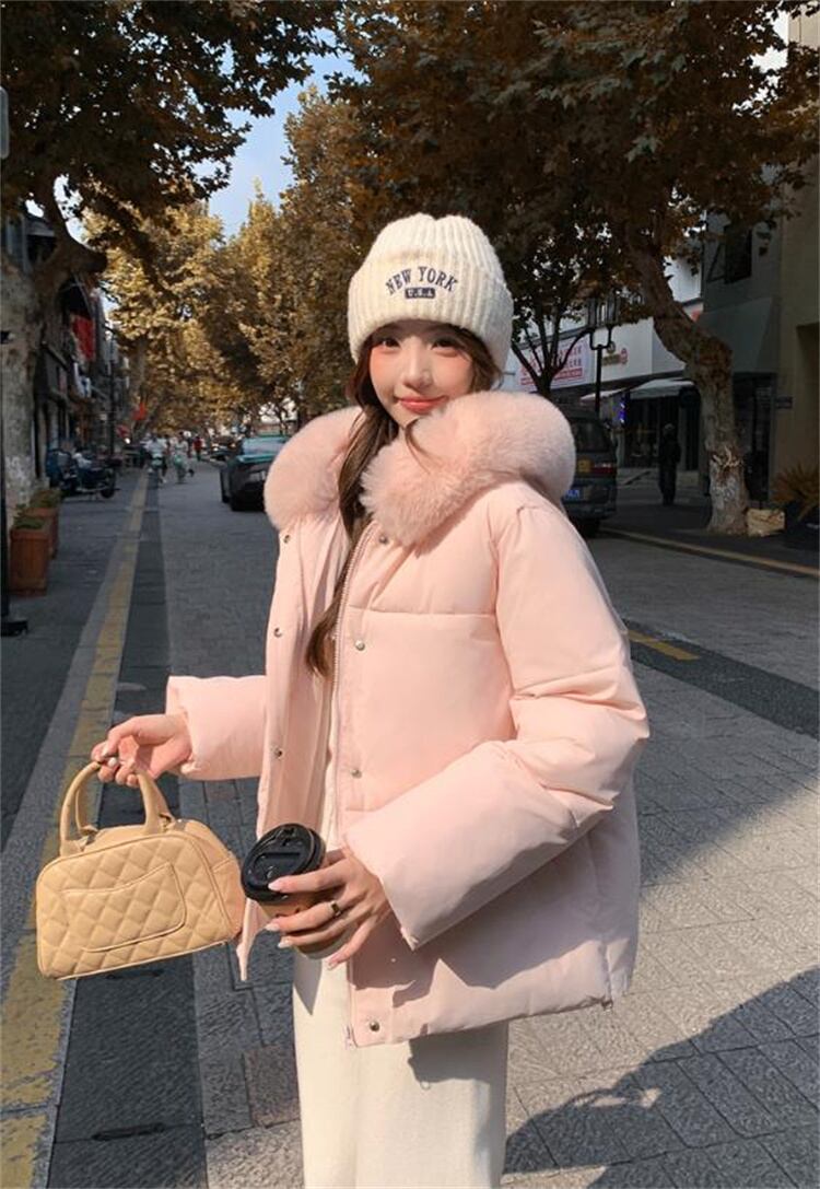 フード付き たっぷり毛足 ショートダウン 2025冬 ゆったり厚手防寒着