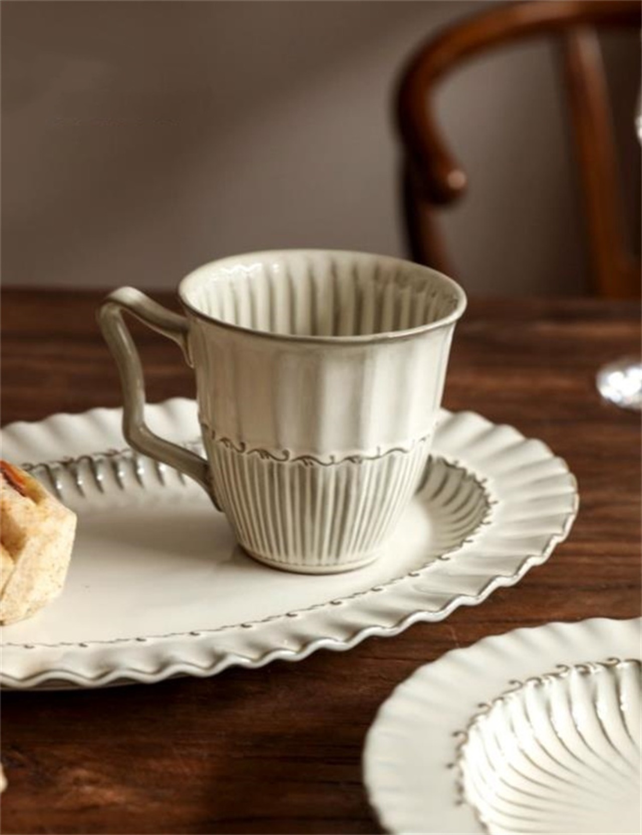 浮彫りデザインレトロマグカップ 陶磁器コーヒーセット ソーサー付き ティータイムの小物に N2JY2025101814 :dodo