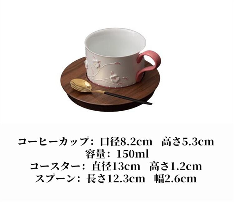 女性用陶磁器カップセット 花柄デザイン コーヒー/紅茶用 スプーン付き3点 N2JY2025101809 :dodo