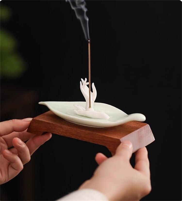 葉っぱが香灰をサッとキャッチ; おうち時間に、ちょっと特別な演出を。