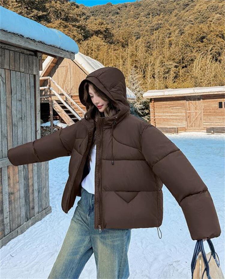 冬 厚手ルーズジャケット ダウン綿素材 フード付き 暖を保つ短身
