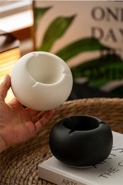 飛び散る灰ともサヨナラ♫ 深めの形状と安定感ある陶器製ボディで、灰やタバコのポイ捨てをしっかりキャッチ!白と黒のシンプルカラーは、オフィスやカフェのテーブルにもぴったり; お掃除ラクラクで、毎日気持ちよくお使いいただけます〜