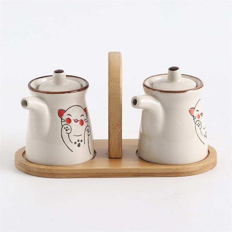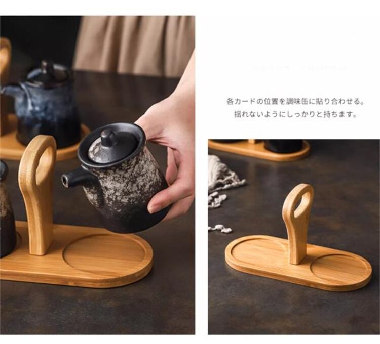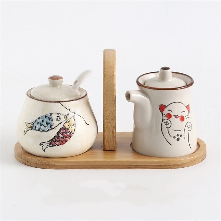 キッチン調味セット 陶磁器製 塩罐・唐辛子入れ・酢差し スプーン付き 平板トレイ N2JY2025102810 :dodo