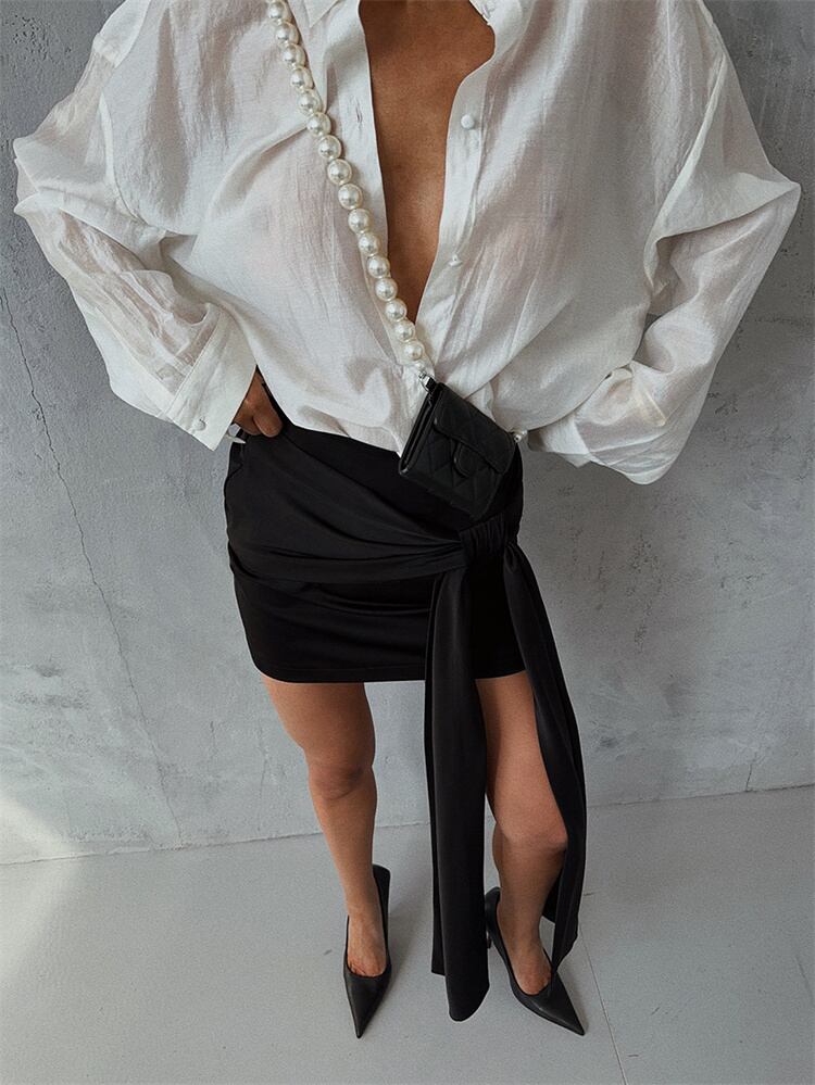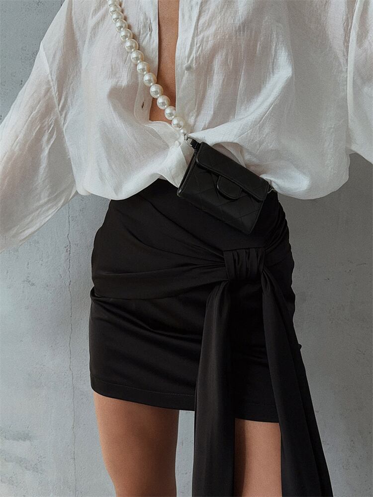 春夏向け 短めスカート 女性 リボン結び 欧米ファッション