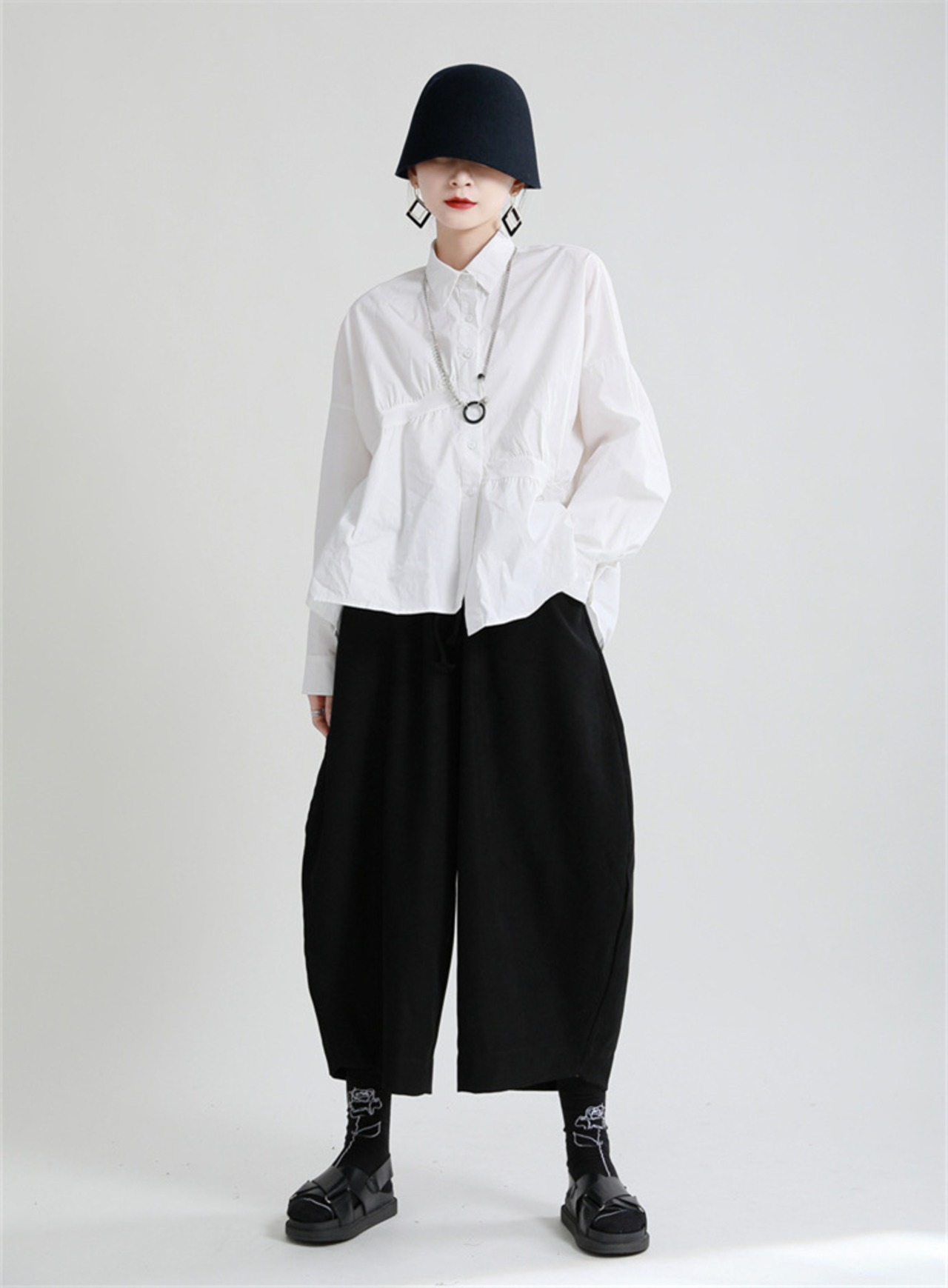 動きやすい秋冬パンツ 上品なハーレムカット すらりと見えるアンクル丈