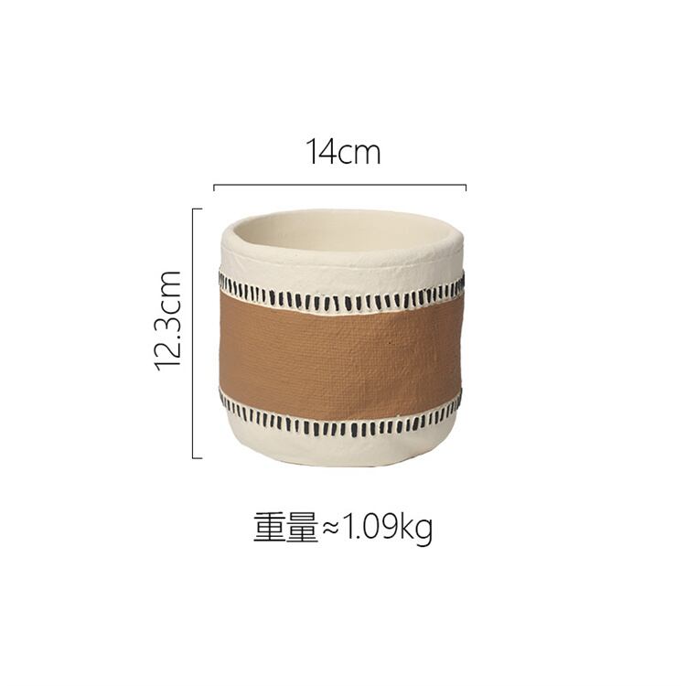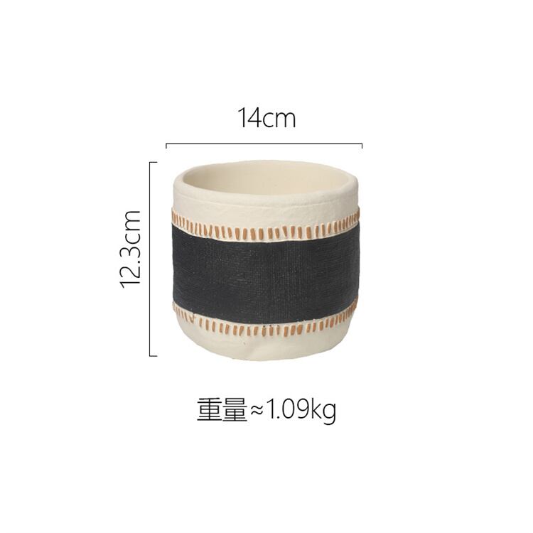 北欧スタイル園庭装飾 セメント植木鉢 手描きアート シンプルデザイン 通気性向上 植栽容器 N2JY2025111414-01 :dodo