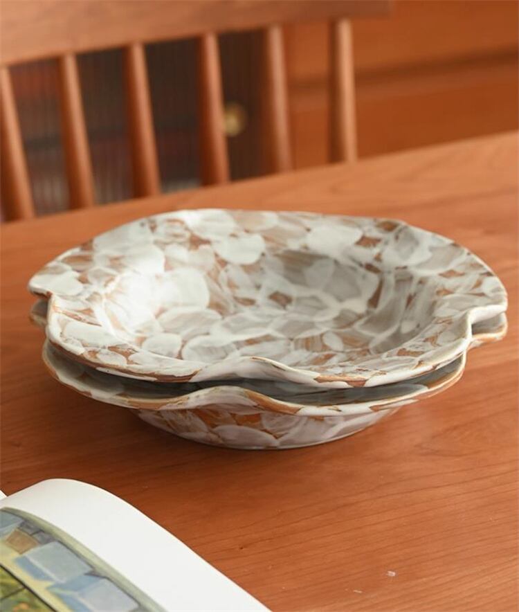 手描き花びら 素焼き食器 デザート・フルーツ盛り皿 N2JY2025110727 :dodo